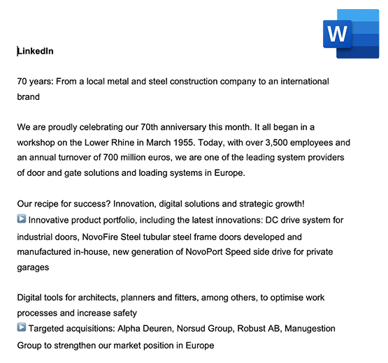 | 70 years: Novoferm’s road to success From a local metal and steel construction firm to an international brand | ||