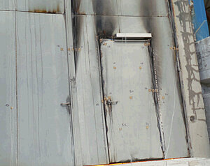 3. Relevé de température de la porte sur sa face non exposée. Vérification de son étanchéité et de sa tenue mécanique au feu.