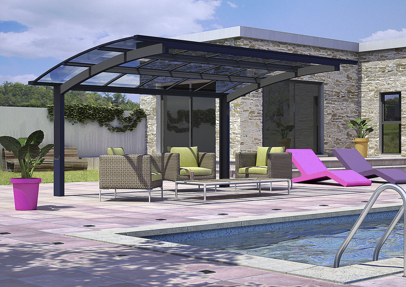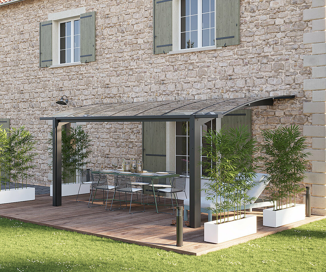Les Carports de Novoferm® permettent d’aménager selon vos goûts vos espaces extérieurs : terrasse, spa, piscine… Sa structure design et performante vous protège des UV tout en vous offrant un maximum de lumière. En harmonie avec votre maison, vous pouvez personnaliser la couleur de votre Carport.