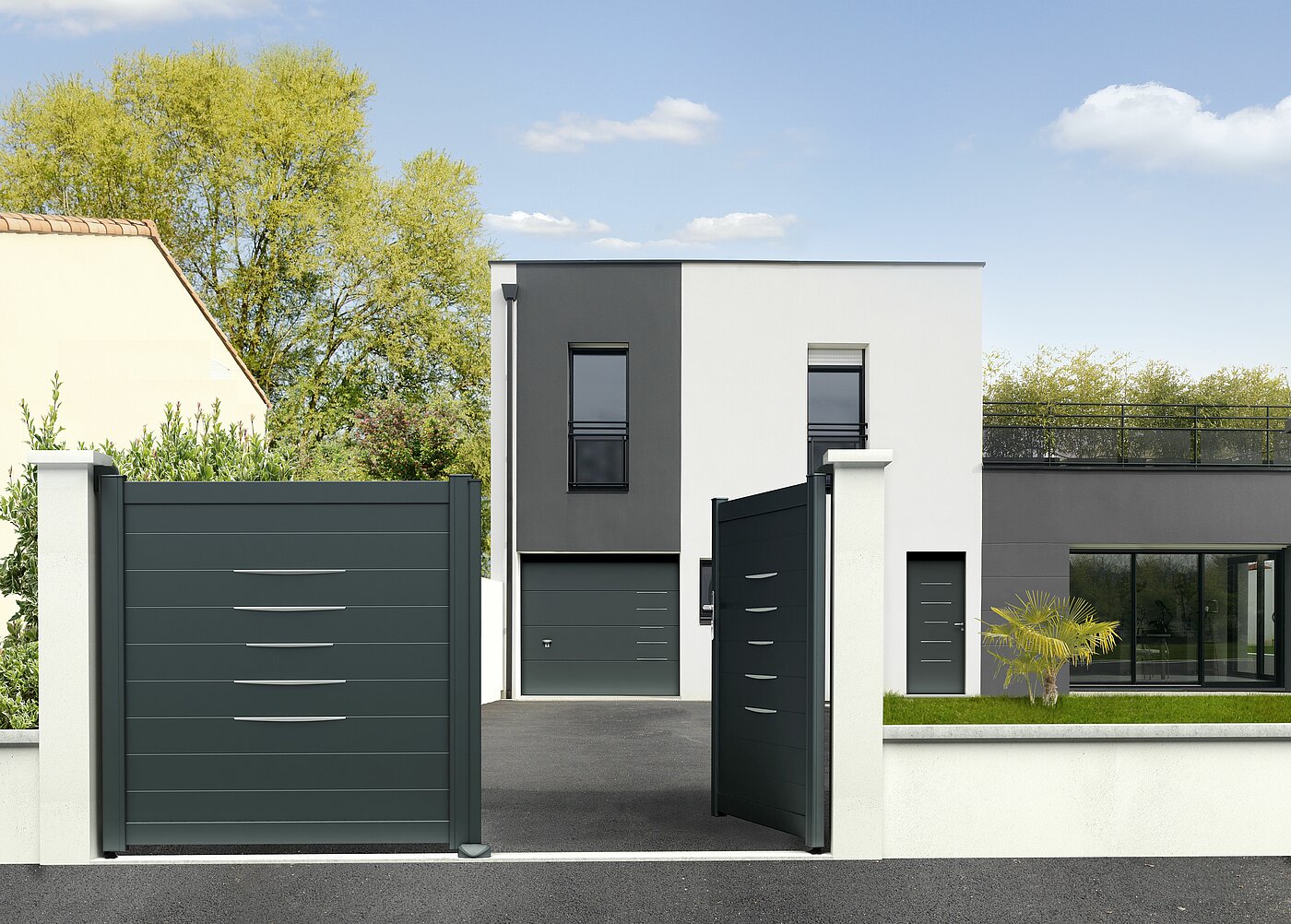 Transformez les abords de votre maison pour une impression d'harmonie visuelle et esthétique grâce à différents modèles pratiques et attractifs. Personnalisez votre logement jusqu'au bout avec des portes et portails assortis : les design Equation, Dream ou encore Opale vous attendent.
