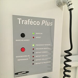 En cas de défaut d'une sécurité, Traféco® Plus bloque immédiatement tout mouvement de la porte. Elle peut alors être manoeuvrée électriquement grâce à une pression maintenue sur le bouton de la télécommande. Une ouverture manuelle peut également être réalisée de l'intérieur. De l'extérieur du parking, cette ouverture manuelle est activable par contacteur à clef.