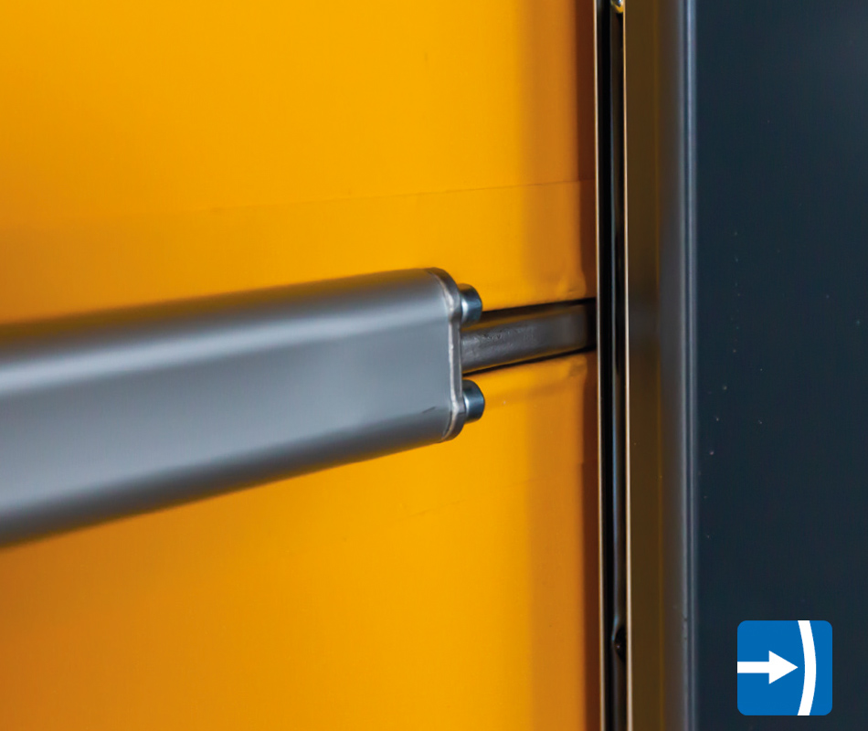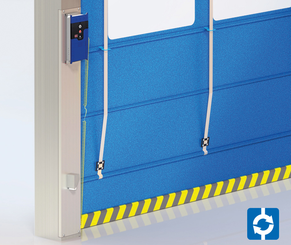 Après une collision avec la porte, le tablier revient automatiquement sur le rail de guidage. Cela élimine pratiquement toute interruption de votre processus de production.
