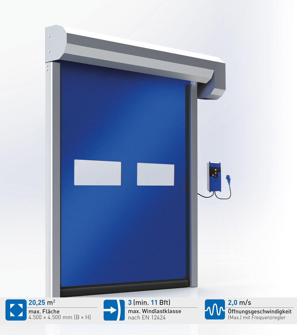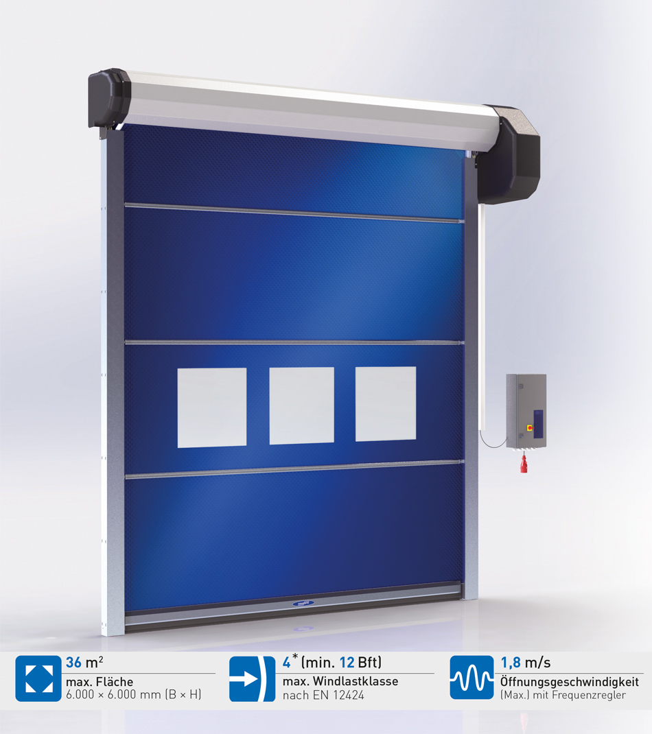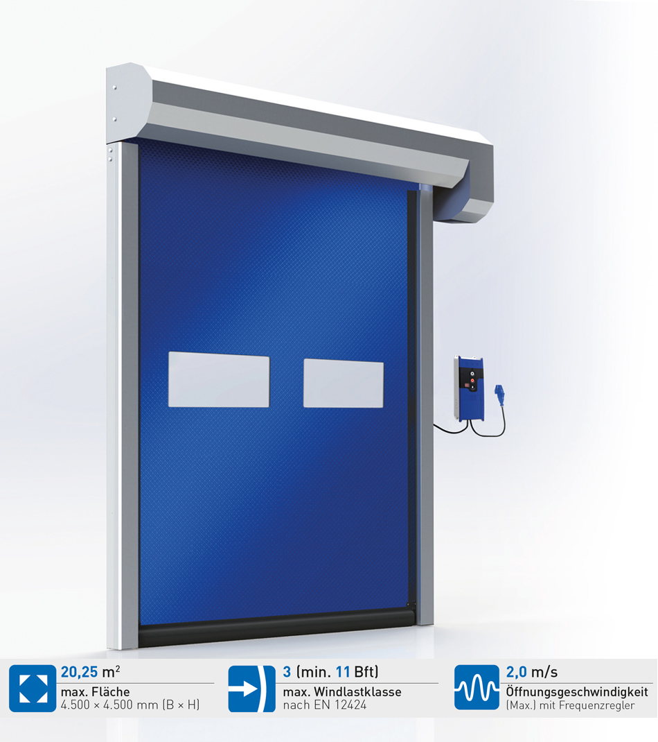 Le SPEEDROLLER NOVOZIP à autoréparation est la solution idéale pour les ouvertures allant jusqu'à 20,25 m² soumises à une utilisation intensive.