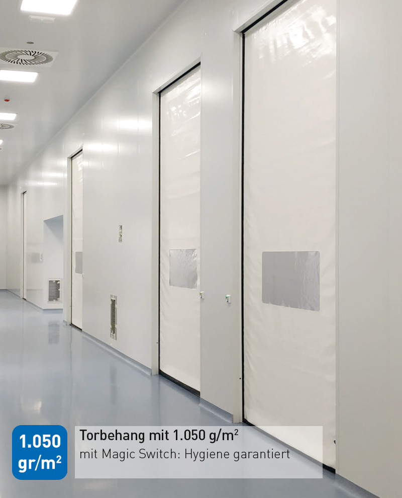 Disponible en option avec un rideau de porte blanc d'un poids de 1 050 g/m²