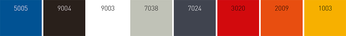 Disponible de série avec un rideau de porte de 1,2 mm dans les couleurs RAL suivantes :