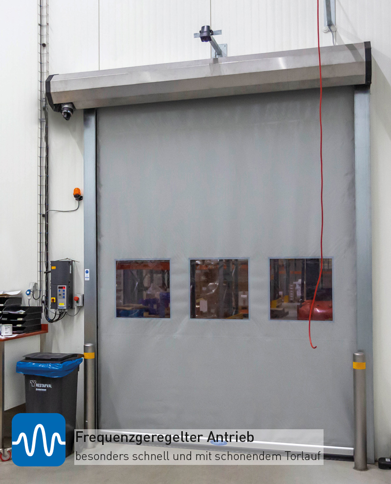 Dans l'INDUSTRIE ALIMENTAIRE, des portes rapides, fiables et hygiéniques sont indispensables. Dans ce contexte, le SpeedRoller Strong est la solution idéale : rapide grâce à la commande à fréquence en option, fiable grâce à sa structure porteuse robuste dotée de profilés de renfort supplémentaires, et hygiénique grâce aux glissières en acier inoxydable en option, aux charnières encapsulées et aux joints résistants à la moisissure.