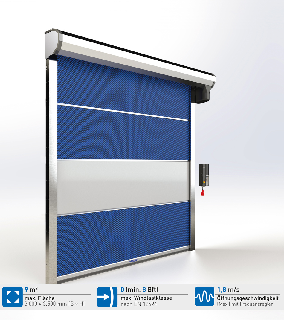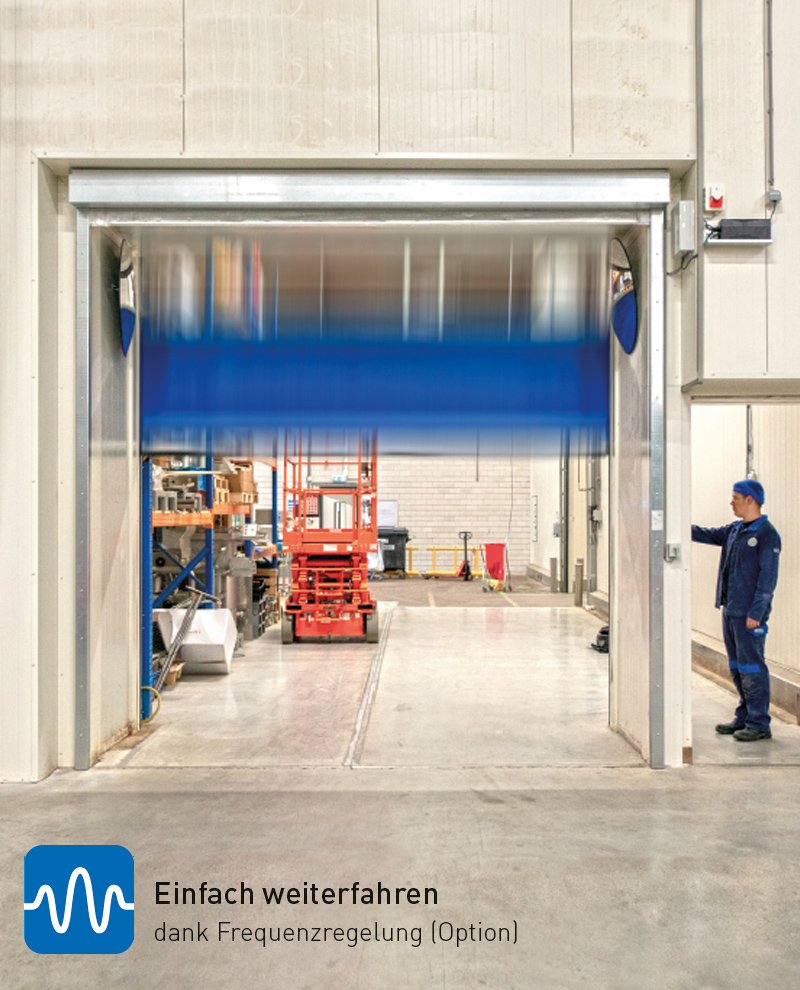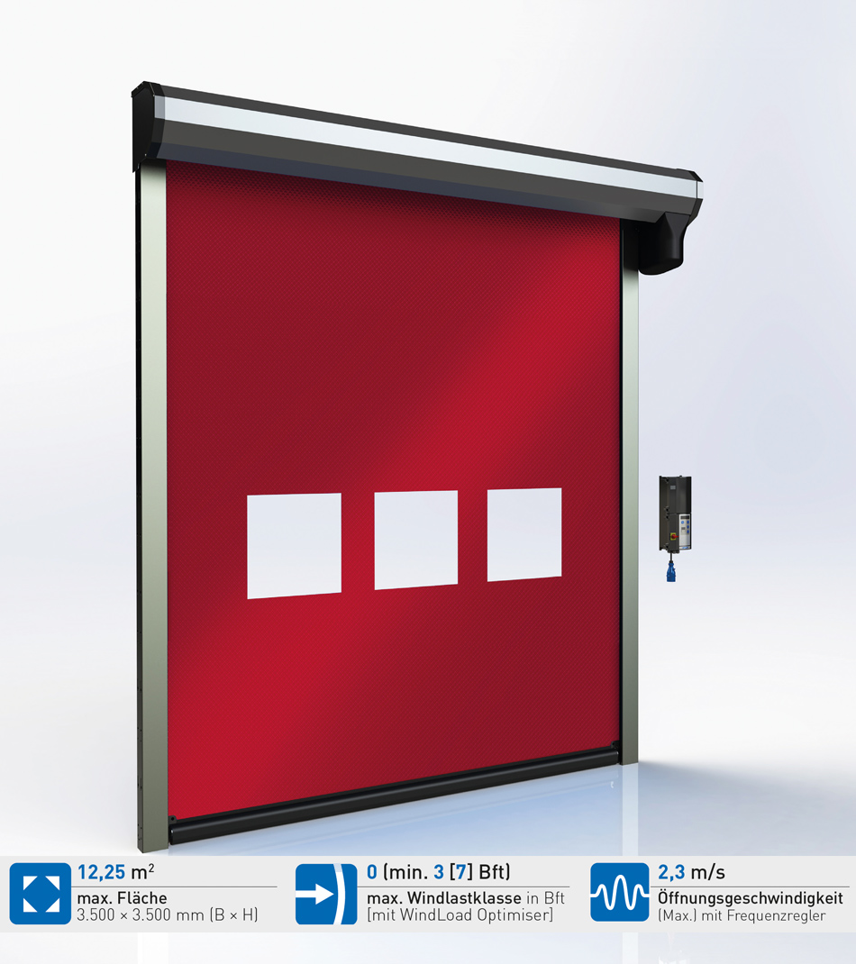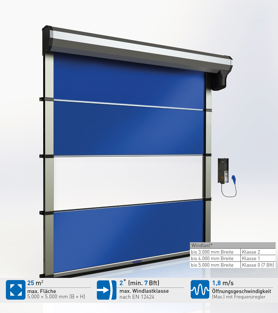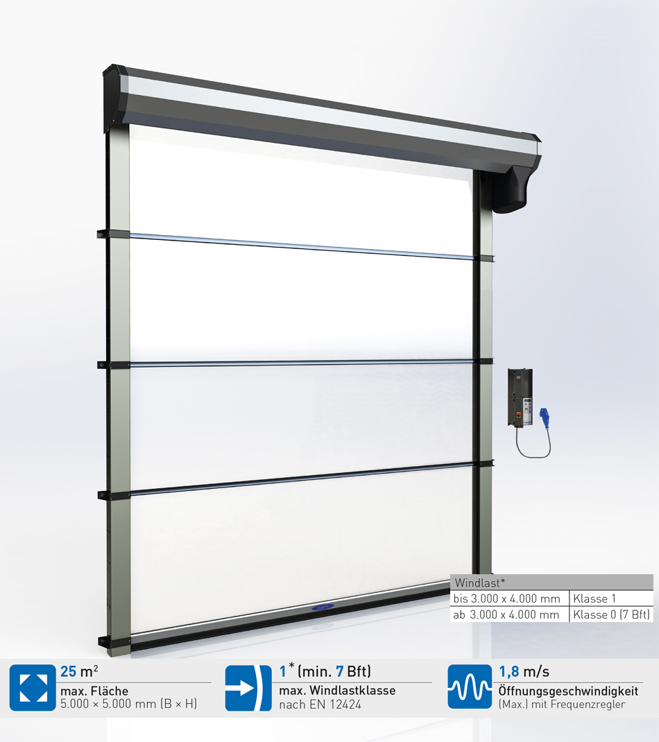 Idéal pour le passage rapide de personnes et de marchandises, même en cas de forte pression du vent. Convient aux ouvertures jusqu'à25 m².