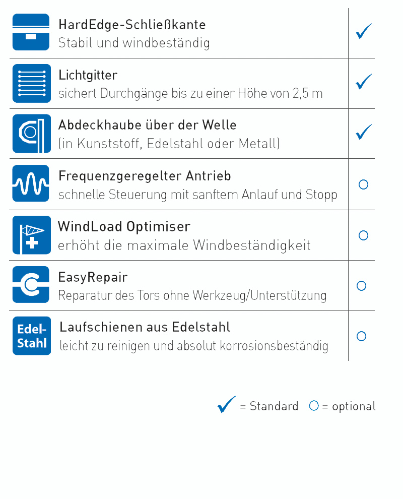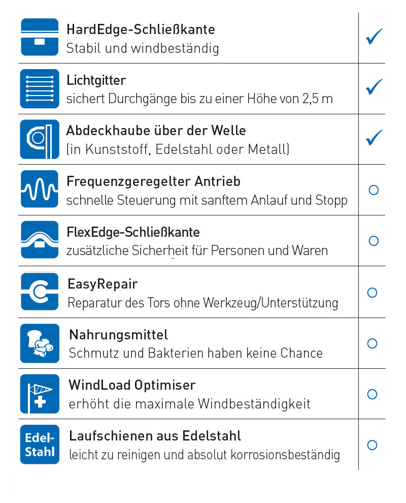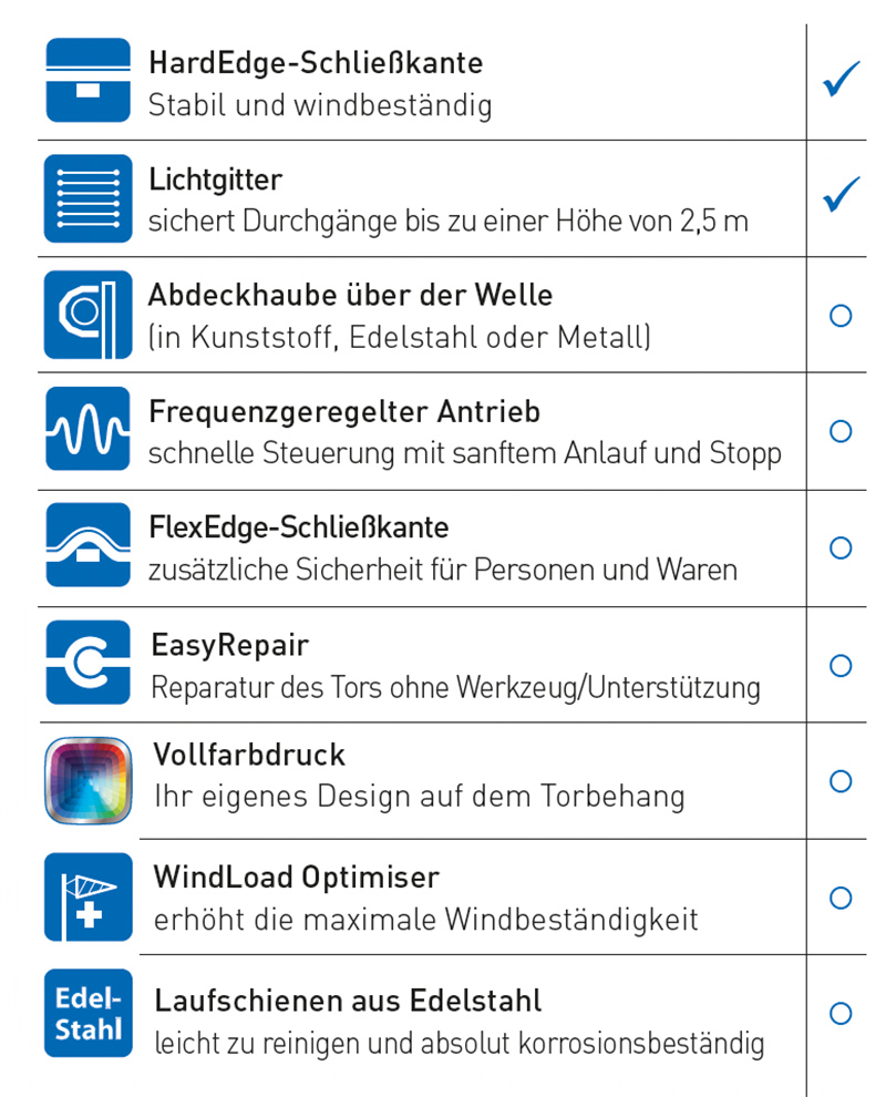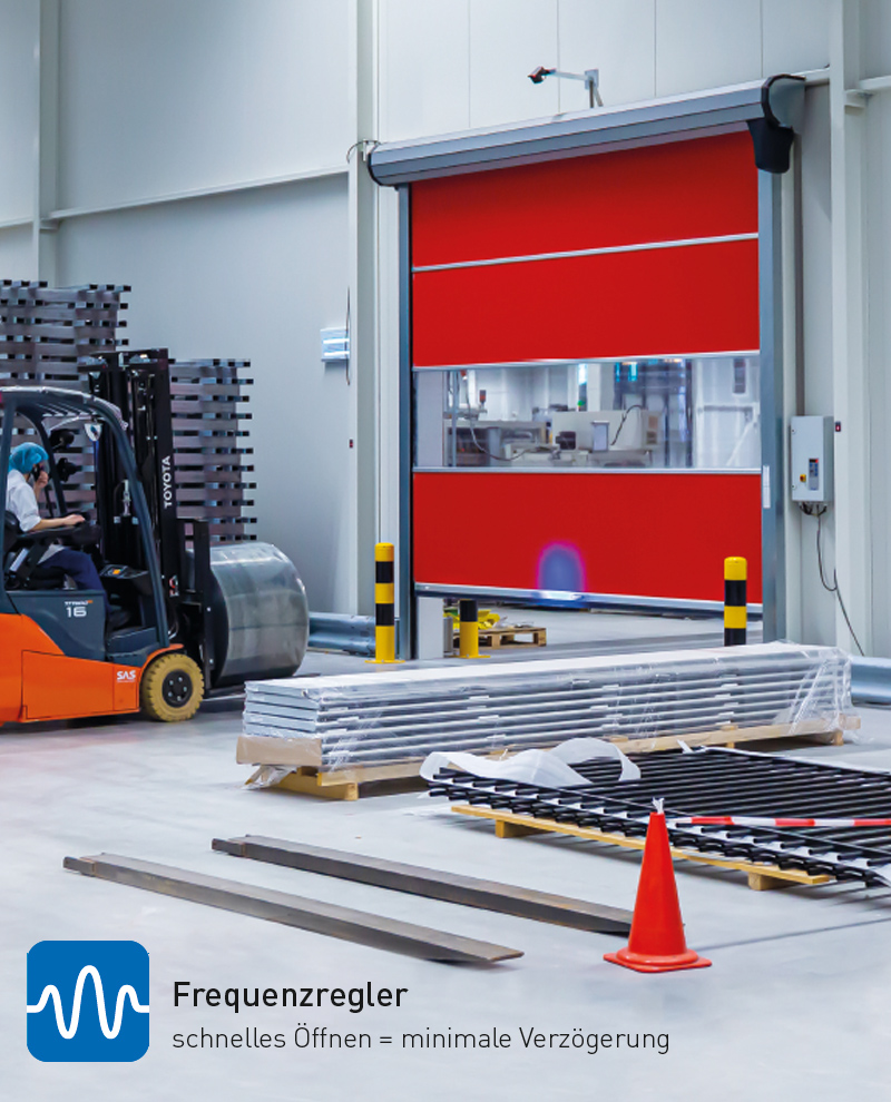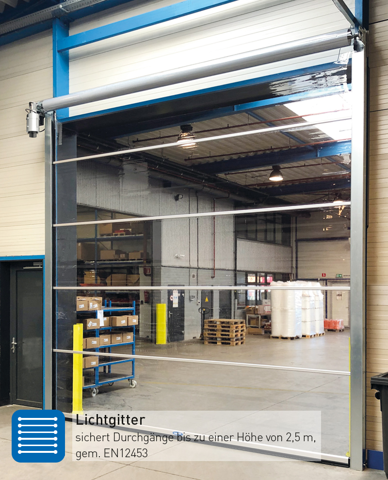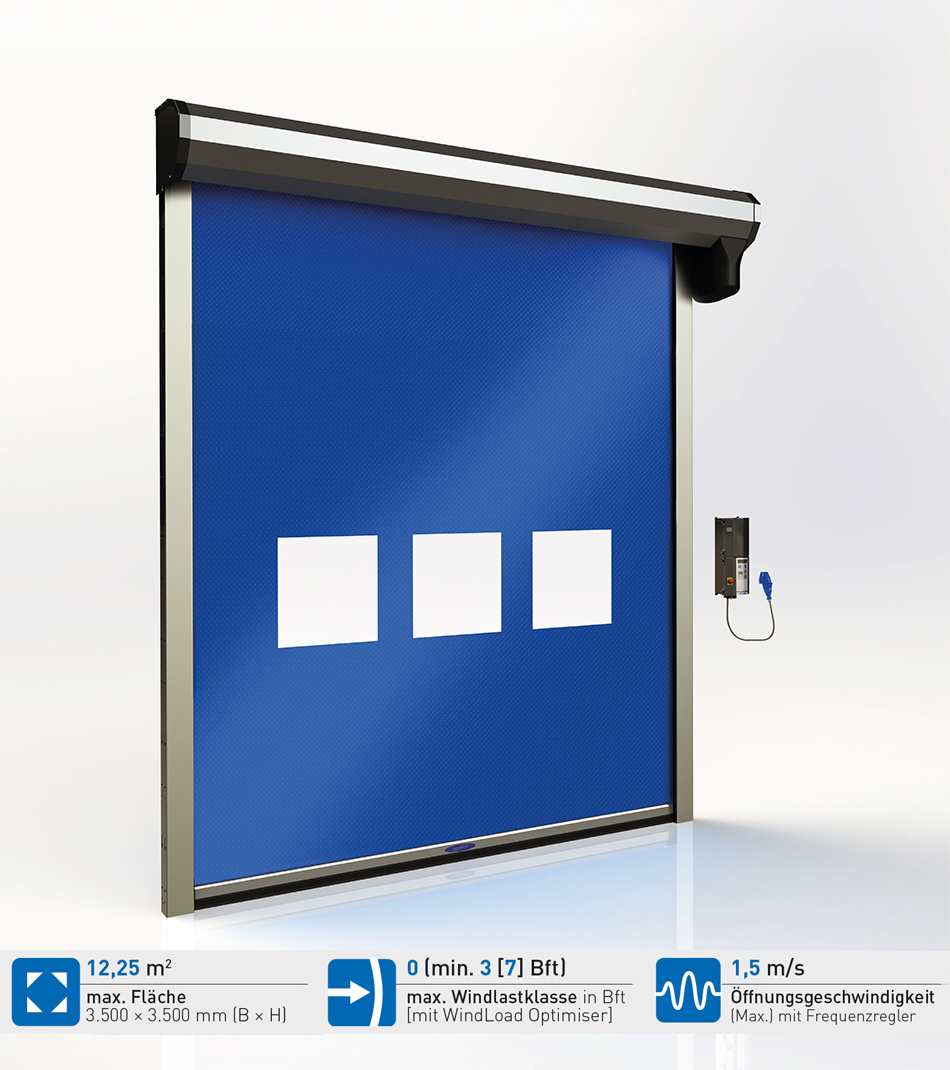 Idéal pour le passage rapide de personnes et de marchandises, même en cas de forte pression du vent. Convient aux ouvertures jusqu'à25 m².