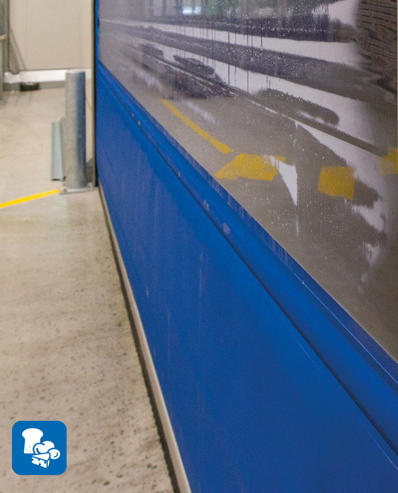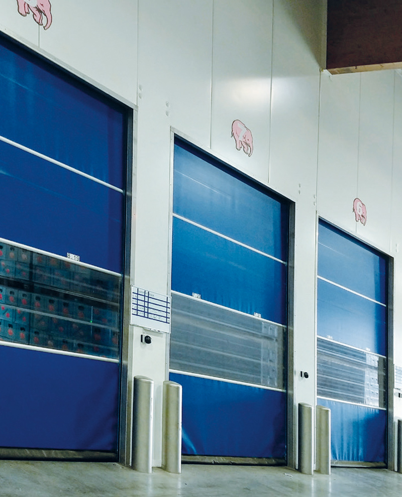 L'INDUSTRIE ALIMENTAIRE a souvent besoin de petites portes rapides, faciles à nettoyer et pouvant être actionnées à l'aide d'une corde de traction, par exemple depuis un petit chariot élévateur ou un transpalette. Si la pression du vent dans le passage n'est pas très forte, les portes de la gamme Prime sont idéales pour ce type d'applications.