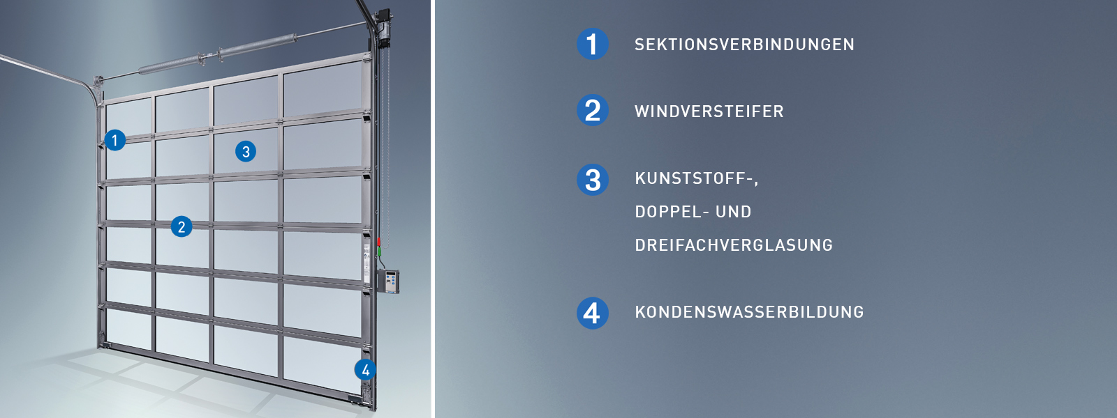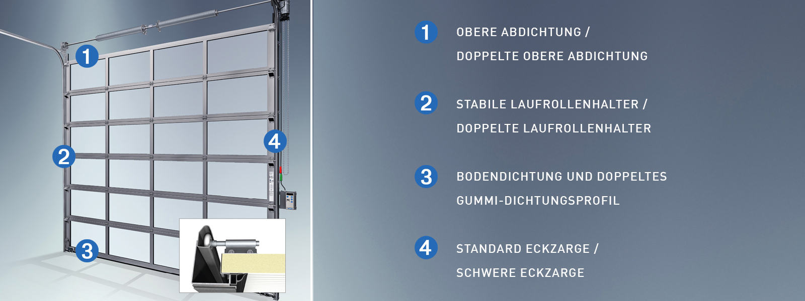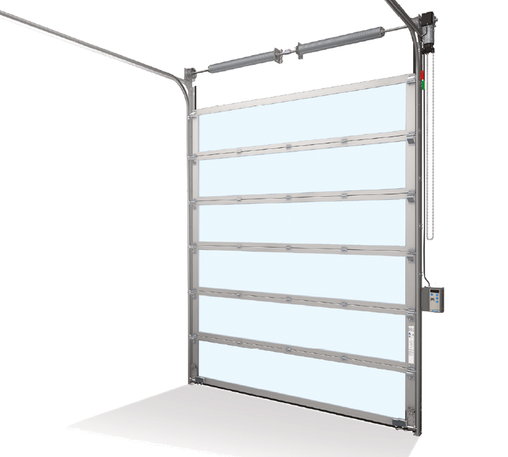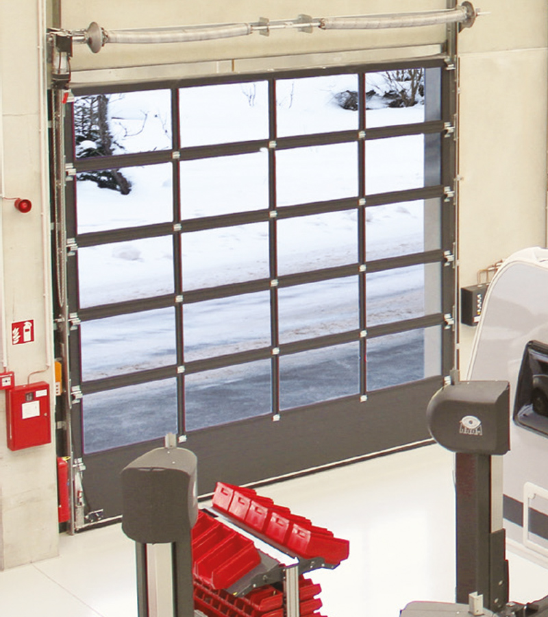 - Portes sectionnelles industrielles NovoLux, de l'isolation standard à l'isolation haute performance, avec triple vitrage