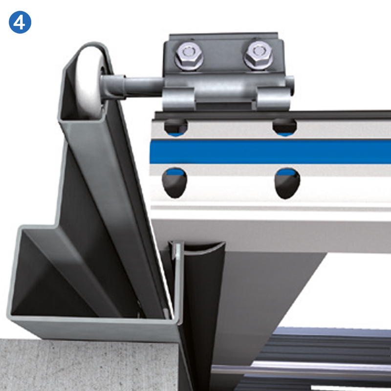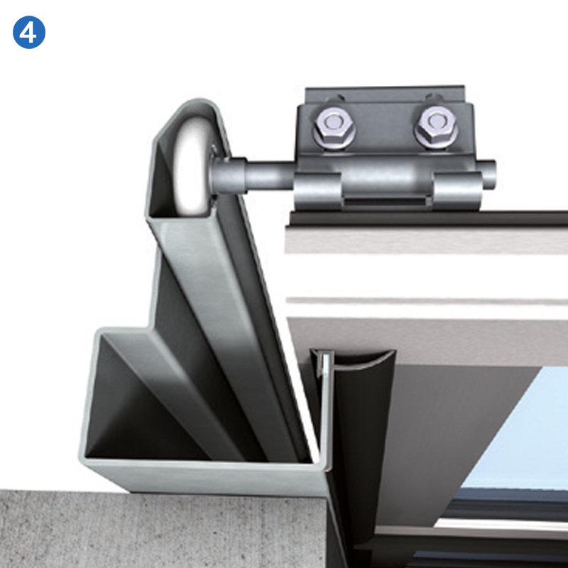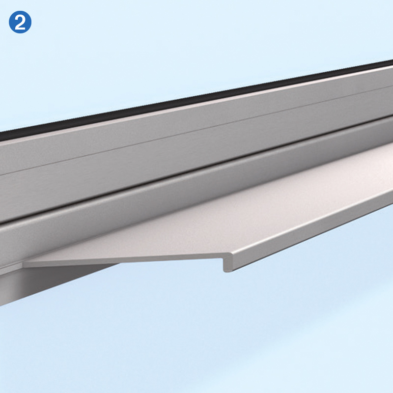 Novoferm est l'un des rares fournisseurs du secteur à utiliser de série des parcloses en aluminium anodisé. Cela présente l'avantage d'offrir un rendu esthétique nettement supérieur et une durabilité bien plus grande que les cadres en plastique noir souvent utilisés. De plus, les composants en aluminium utilisés ont tous le même coefficient de dilatation, ce qui permet à l'ensemble de se dilater de manière uniforme sous l'effet de la chaleur et évite que les cadres ne se déforment, comme c'est souvent le cas avec les cadres en plastique.