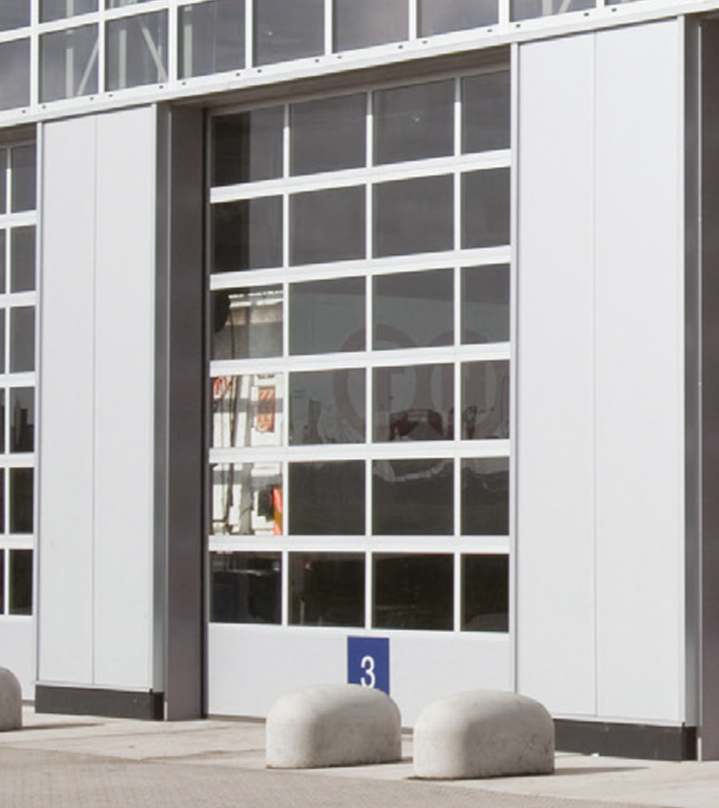 La NovoLux XL est disponible dans une largeur maximale de 4 000 mm et une hauteur maximale de 4 500 mm. La porte NovoLux XL est particulièrement adaptée aux environnements où l'esthétique du bâtiment est importante, ainsi que la luminosité et la visibilité dans le hall. Le « Plexiglas Optical » utilisé se caractérise par le fait qu'il ressemble à du vrai verre, tout en offrant la sécurité du plastique. Les vitrages Plexiglas Optical sont disponibles en double vitrage de 20 mm et en triple vitrage de 40 mm.