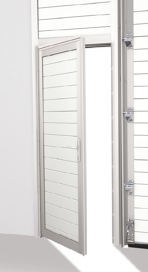 Une porte de service peut être intégrée à une porte Novoferm NovoLux ou Thermo, qui peut même être homologuée comme issue de secours sous certaines conditions.