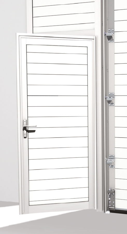 Les portillons peuvent être intégrés à la porte sectionnelle, mais ils n'améliorent pas la stabilité de la porte. Il existe également des restrictions concernant la largeur, la hauteur et la hauteur du seuil du portillon, ce qui signifie qu'ils peuvent ne pas être conformes aux lois et réglementations applicables aux portes d'évacuation.