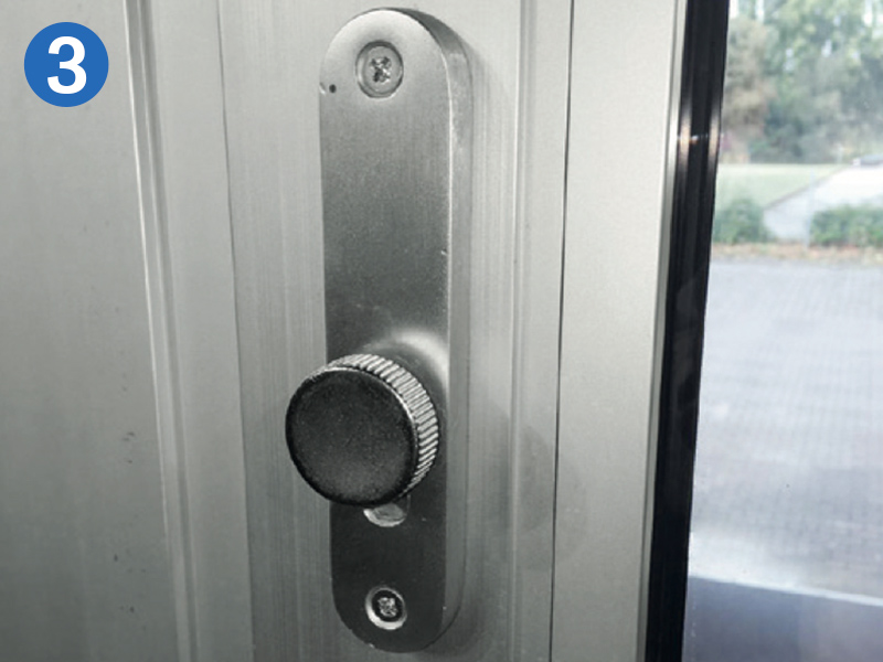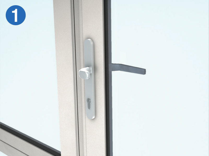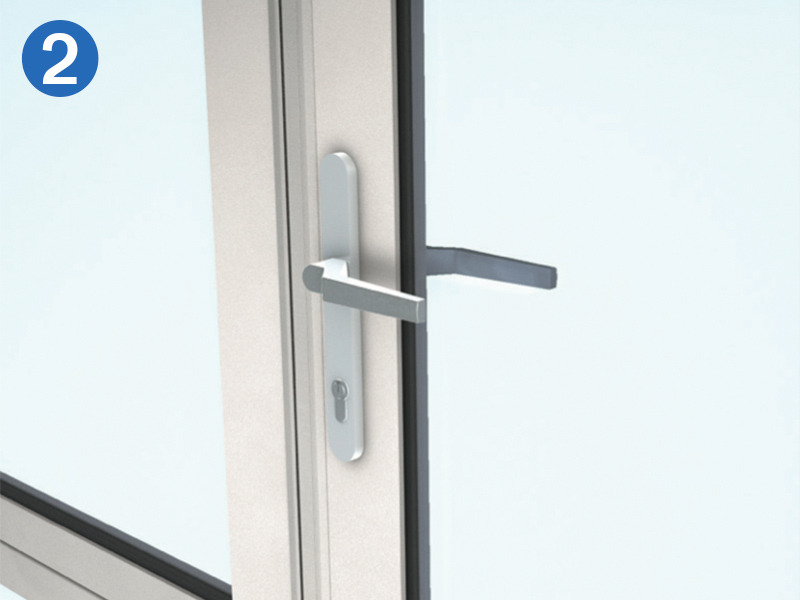 - Serrure anti-panique avec bouton fixe à l'extérieur et barre de poignée à l'intérieur (fonction anti-panique E)