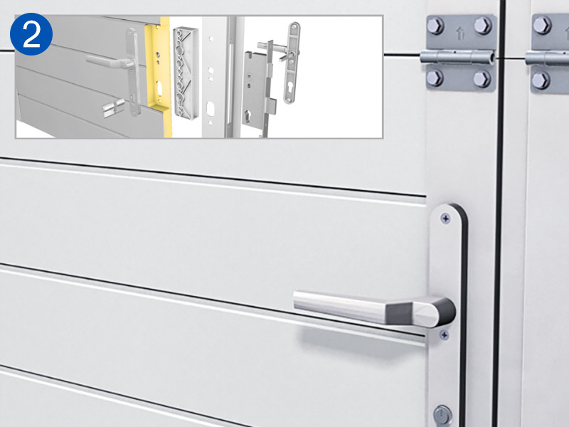 Novoferm a optimisé la conception de laporte intégrée à tous les niveaux. Par exemple, le système de charnières a été intégré à la porte sectionnelle, de sorte qu’aucune fixation n’est visible de l’extérieur.