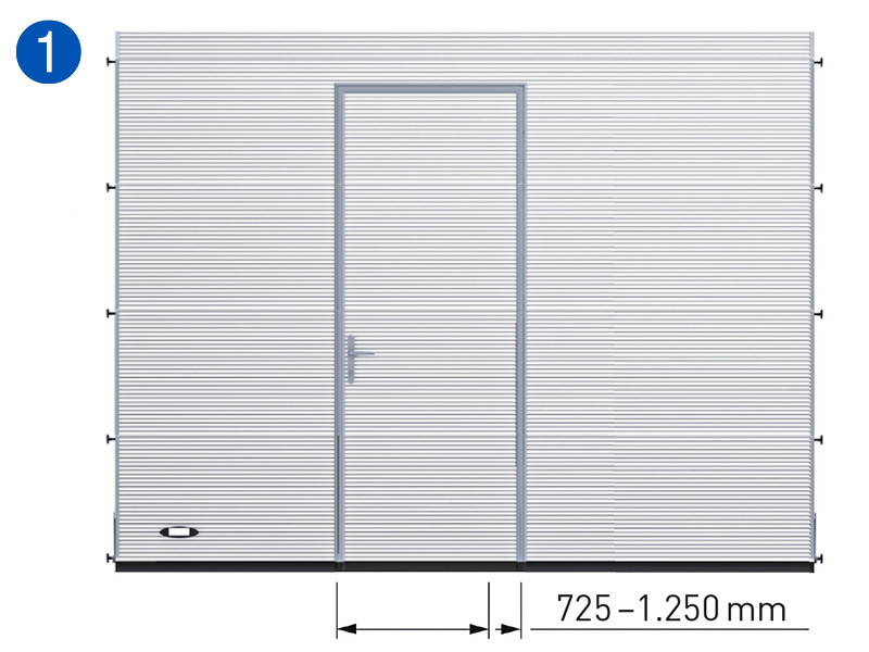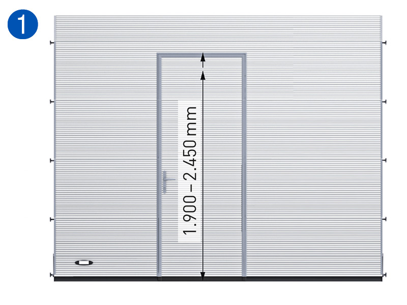 Une porte latérale peut s'ouvrir vers l'intérieur ou vers l'extérieur. Vous pouvez choisir entre une porte à charnières à gauche (DIN) ou à charnières à droite (DIN).