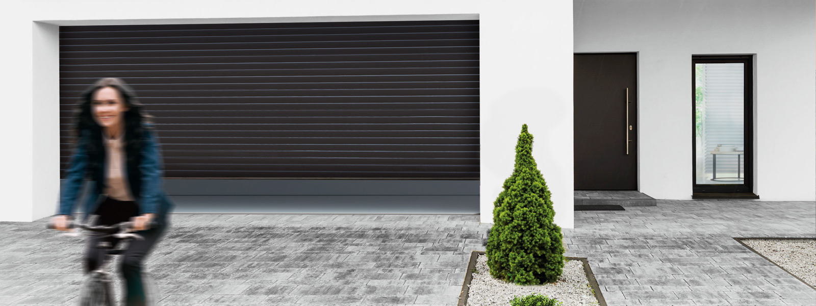 Roller garage doors are made of high-quality aluminium slats and are manufactured according to the roller shutter principle. The individual slats roll into the roller shutter box in a space-saving manner, similar to the window roller blinds used at home. The vertical tracks are fitted with brush seals, which ensure low-wear door guidance!