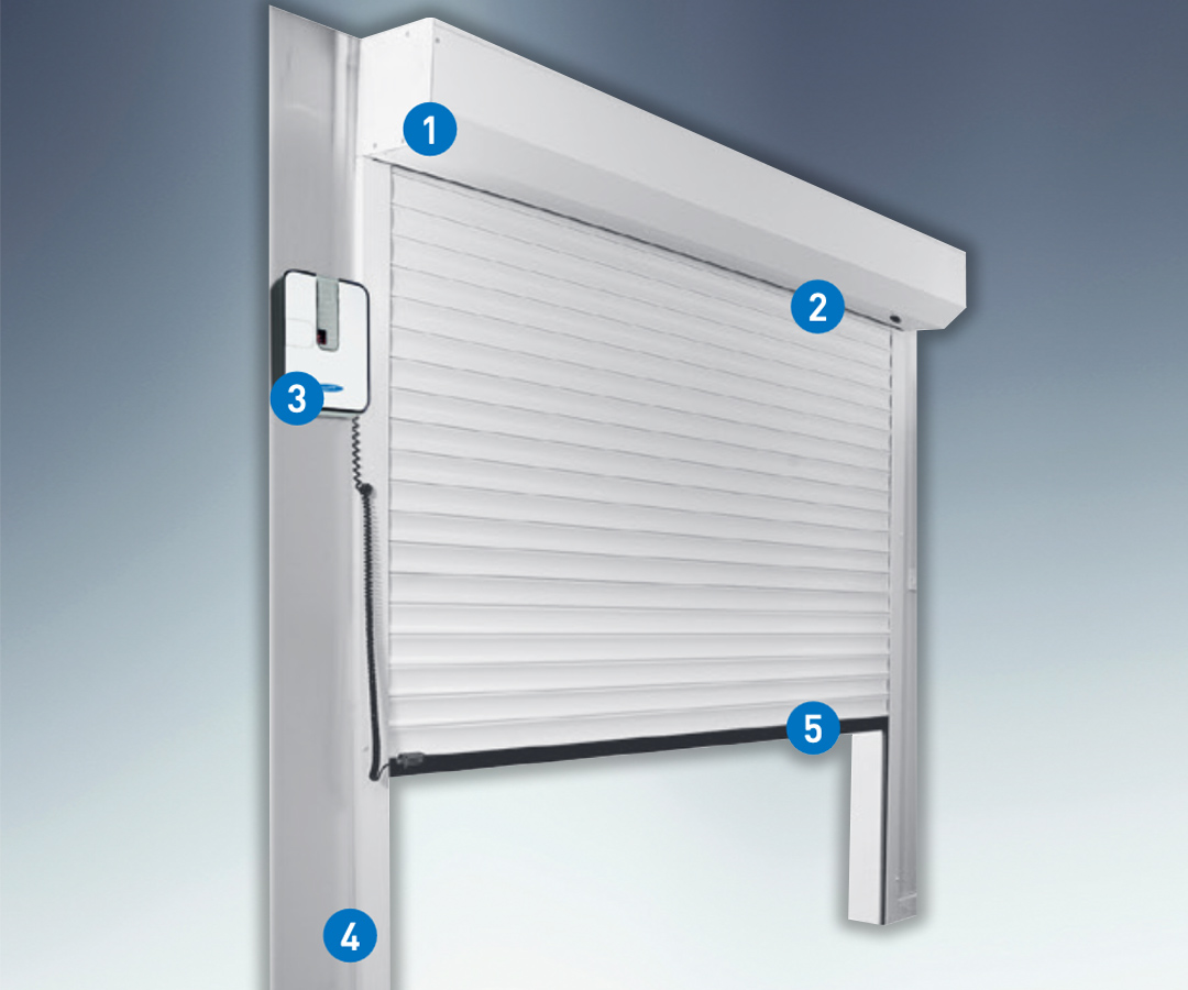 | Functional principle | Door slats roll up into the roller shutter box provided for this purpose to save space, similar to the window roller blinds used in domestic applications |