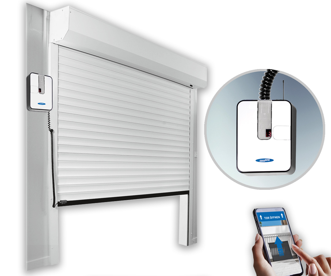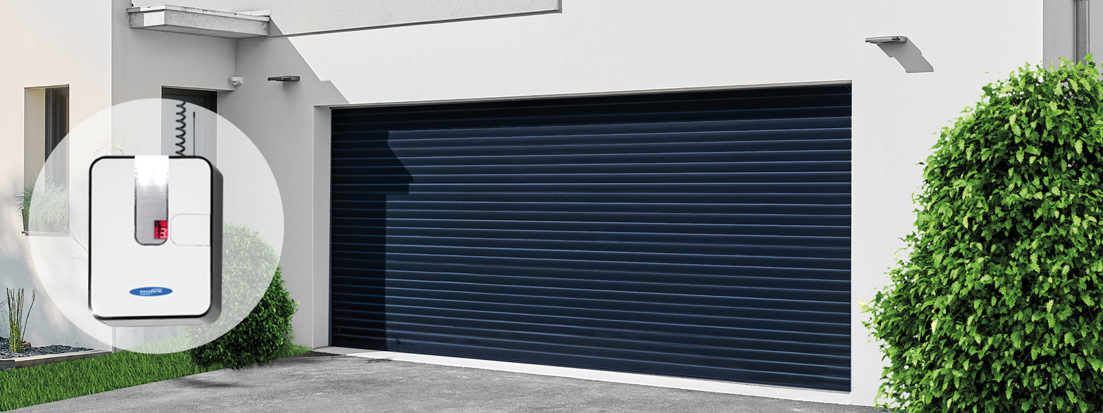 Novoferm roller garage doors are fitted with an electric operator as standard. The smart home-compatible operator is mounted on the side to save space and enables the door to be opened with an integrated button.