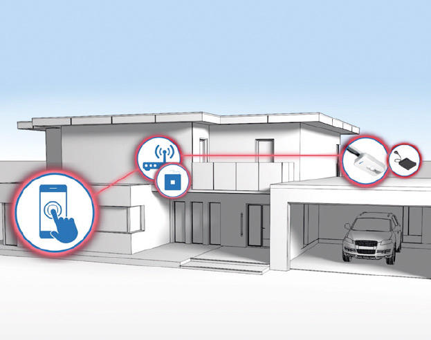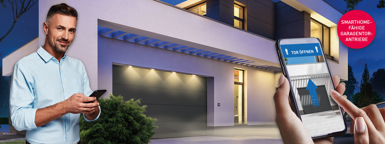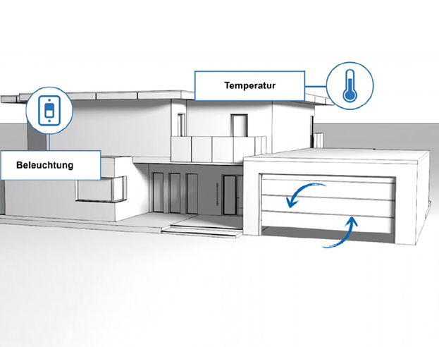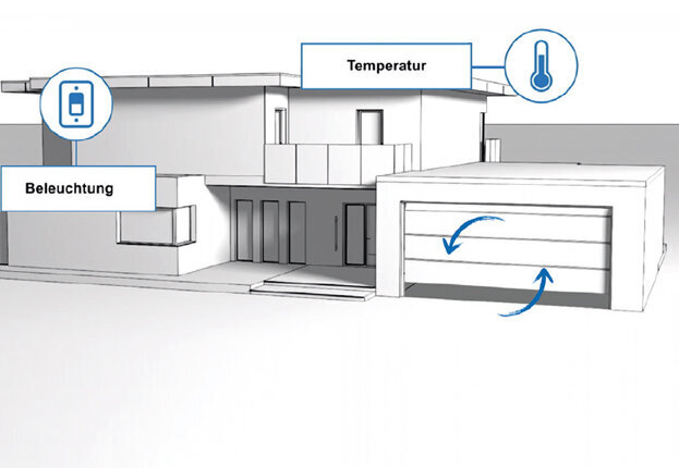 Sectional garage doors can always be controlled reliably and transparently using a smartphone, tablet or voice assistant. Users can also call up the door status, i.e. whether the door is open or closed, at any time and regardless of their location.