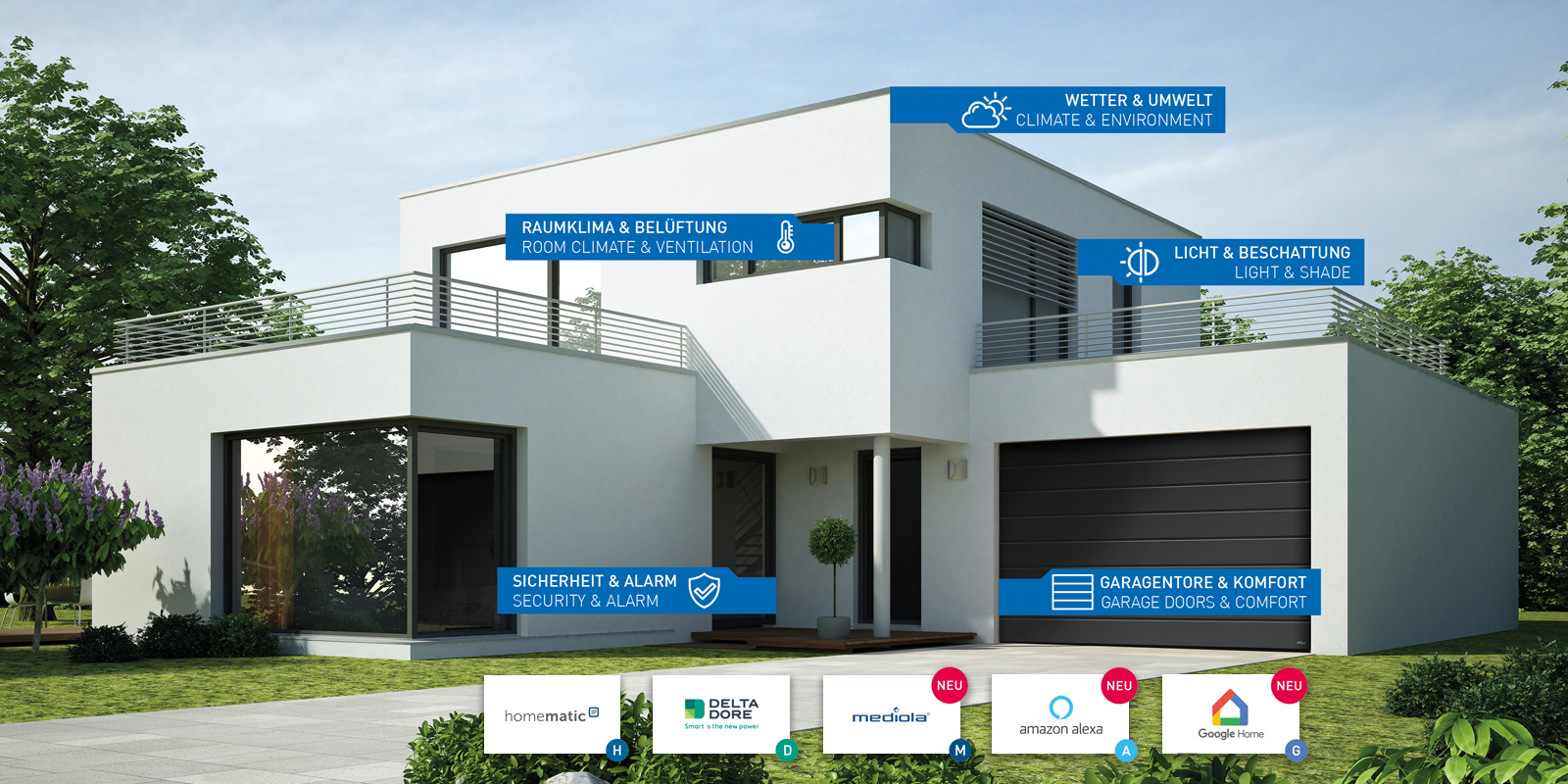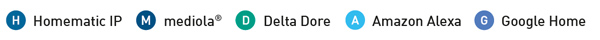 - SmartHome control centre from the respective compatible provider (Homematic IP, Delta Dore or Mediola). No SmartHome control centre is required for Google Home and Amazon Alexa.