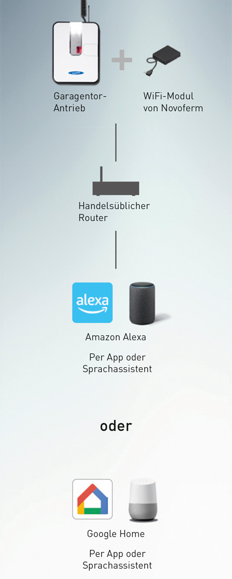 Novoferm garage doors thus simply become part of the Amazon Alexa or Google world.