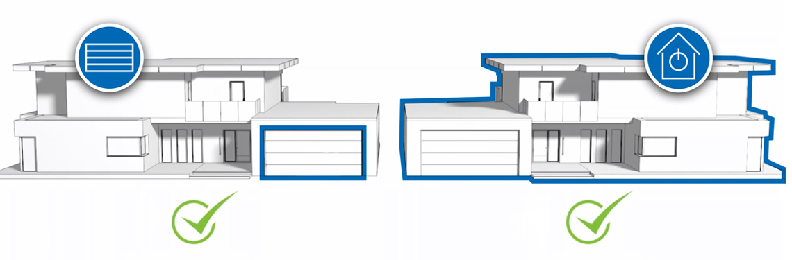 A major advantage of smart technology is that you can customise your environment and devices to your exact needs. Garage doors are no exception. With the help of customised scenarios, the garage door adapts to the everyday life of its users. For example, security scenarios can be set up to protect the car as well as entrances to the house.
