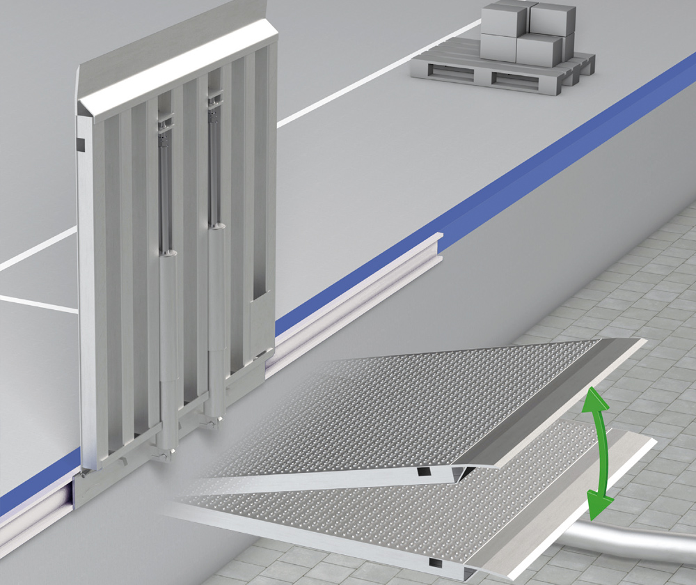 Mechanical dock levellers with folding wedge are controlled via an operating lever and are available in two versions (NovoDock L100 and L150). Both dock levellers are mounted on a ramp.