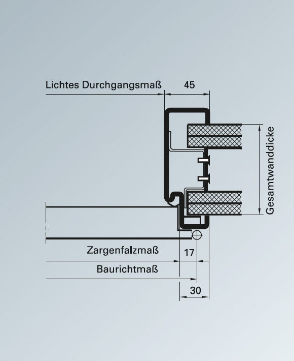 Solid and stable in value - that is the traditional, solid construction method. Modern steel masonry frames from Novoferm are just as stable - ideal for all doors. The Novoferm standard frames (to DIN 18111) are available in many variants, equipped with special systems to accommodate a wide range of hinges.