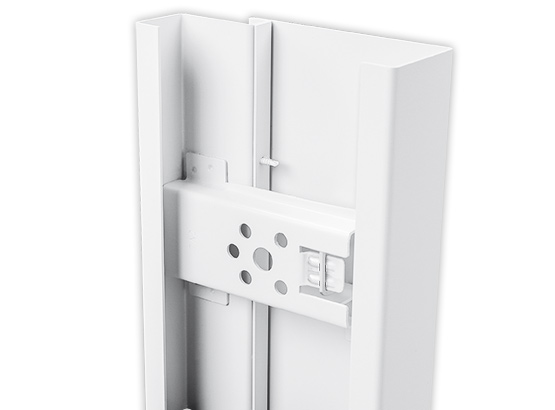 In modern property construction, the number of functional doors with a high door leaf weight is constantly increasing. At the same time, internal partition walls are being built as slim as possible. 100 mm or 125 mm slim stud frame walls have become very popular. In order to ensure the long-term functionality of the door elements, it is particularly important that the load of the door leaf is optimally transferred to the substructure of the wall. This is precisely what the new factory-fitted mounting and reinforcement plate for hinge substructures of the VX system ensures. This optional special reinforcement plate is welded directly to the hinge substructure and then firmly connected to the UA profile of the stud frame wall.