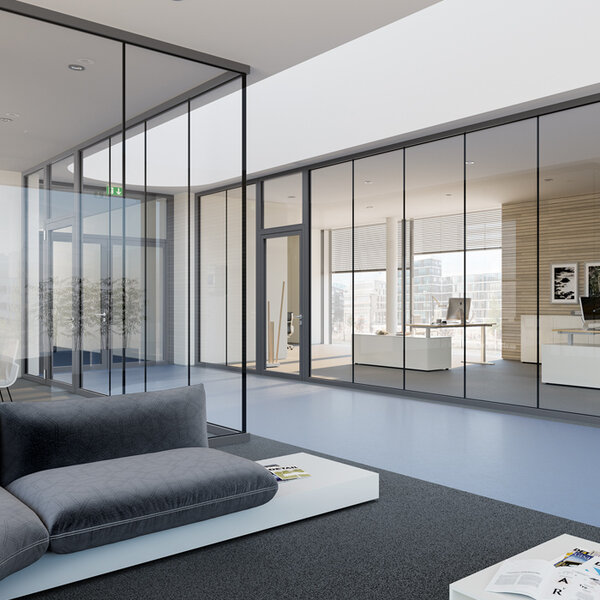 Open structures are continued in the interior. Rooms are no longer walled up and thus hidden from view. They are open and accessible from the outside and appear wide and boundless from the inside. Storey-high constructions are possible, even in accordance with fire or sound insulation regulations, with only minimal joints and very narrow floor and ceiling finishes. Designed without disruptive glazing bars, as if made from one piece. In order not to be at the mercy of the play of light and shadow without limits, such systems today have a range of technical options to delimit the territory and create private spheres as required: Internal blinds or roller blinds - even "smart" types of glass that can switch between transparent and opaque at the touch of a button.