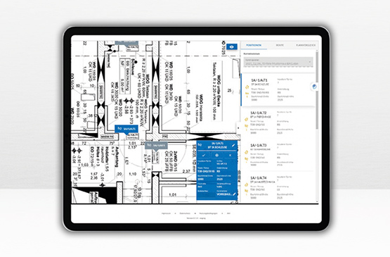The app is used to easily prepare a technical clarification including plan management, digital measurement, integrated measurement check and measurement export. This significantly simplifies the work of site managers, project managers, technicians and measurement technicians.