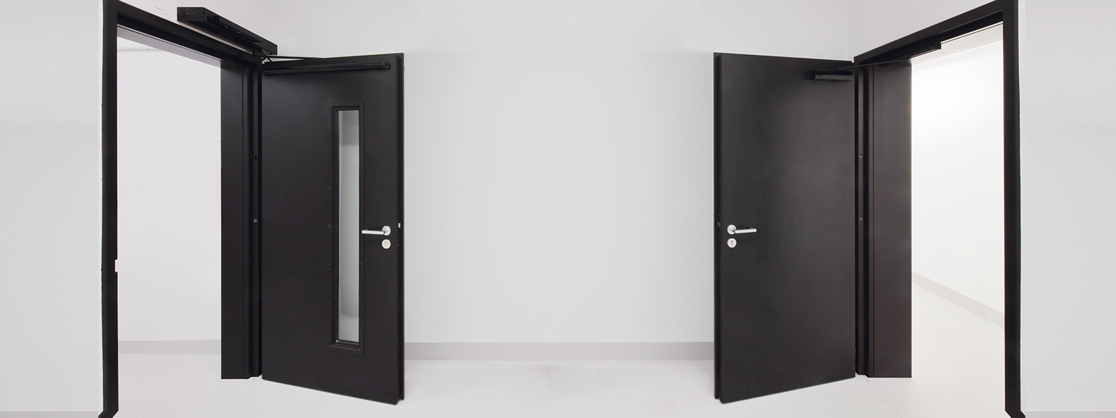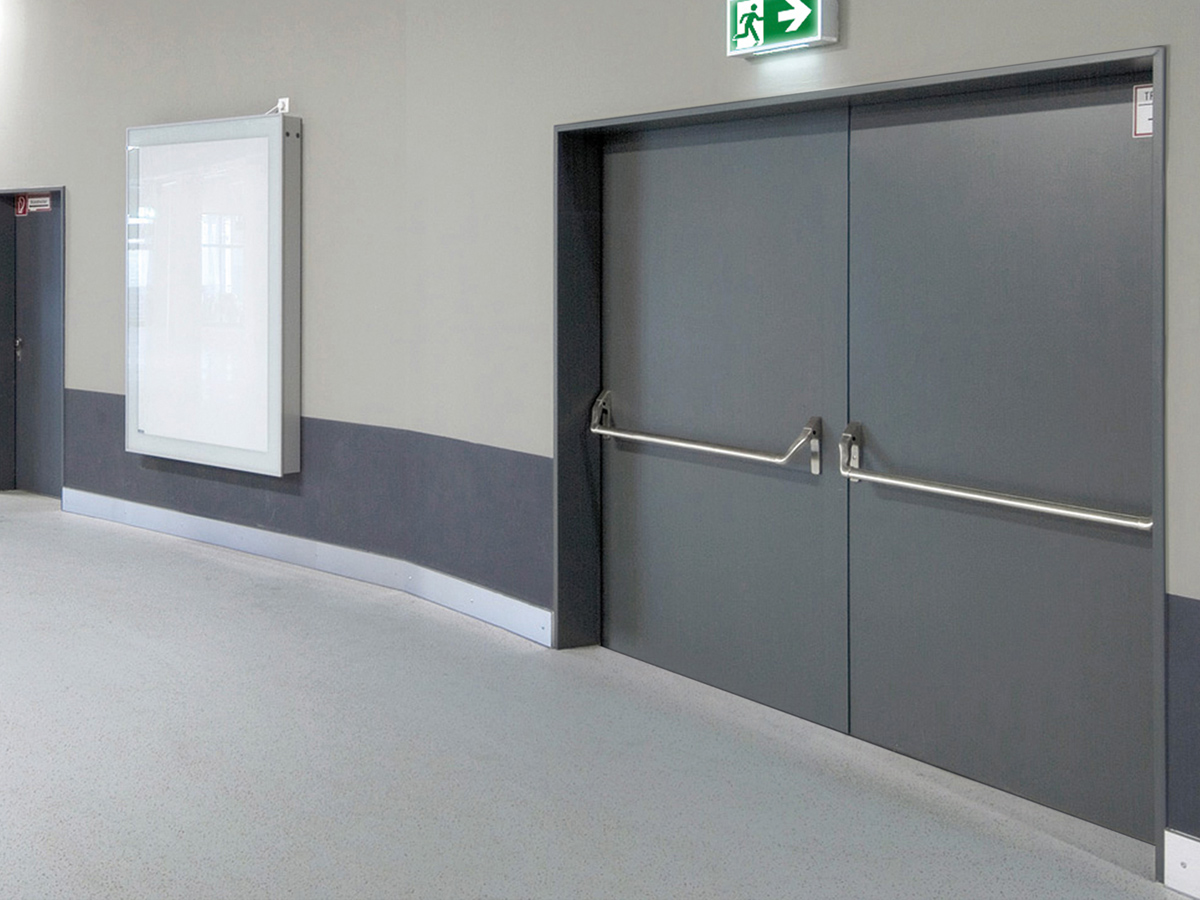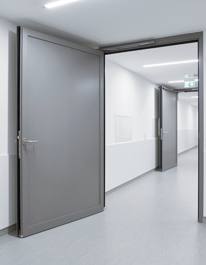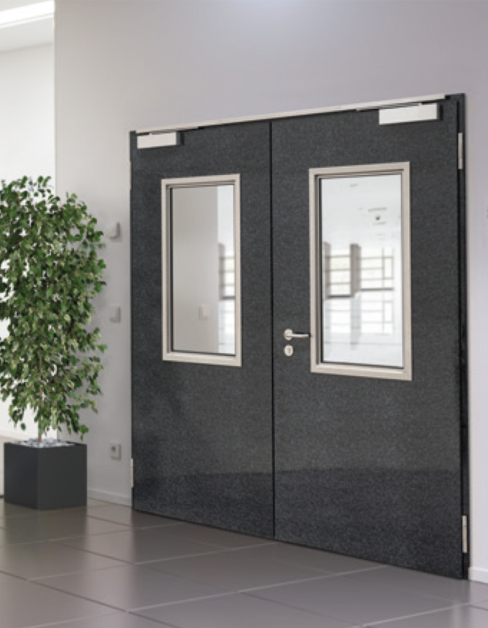 Smoke often causes the most damage in the event of a fire. Smoke gases can lead to smoke poisoning, damage equipment and buildings and hinder evacuation. Smoke protection systems offer effective protection. These are self-closing doors designed to prevent the spread of smoke gases. For this purpose, smoke compartments are set up and divided by smoke protection closures, which are designed to prevent the passage of smoke for a certain period of time. Door closers in accordance with DIN 18263 or DIN EN 1154 must be used for self-closing. If the doors are to remain open, hold-open systems designed for this purpose must be used. Fittings, handle sets, locks and locking devices may only be used if a certificate of usability is available for them. The requirements for smoke protection doors are regulated nationally in DIN 18095 Part 1. The European test standard EN 1634-3 must be observed.