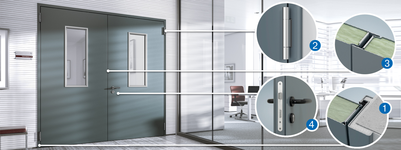 Let's take the door as an example. The simple closure of a room opening has become a technical and design object that has to fulfil a wide range of requirements. These include burglary, sound, smoke and fire protection, to name but a few. They are used in the building envelope as well as in the interior as emergency exits, building access or as a connection between different rooms or utilisation areas.