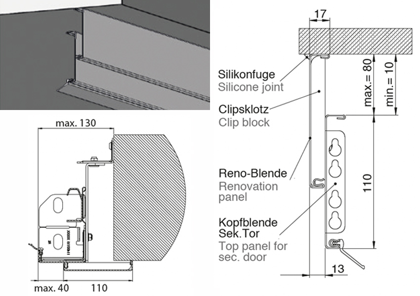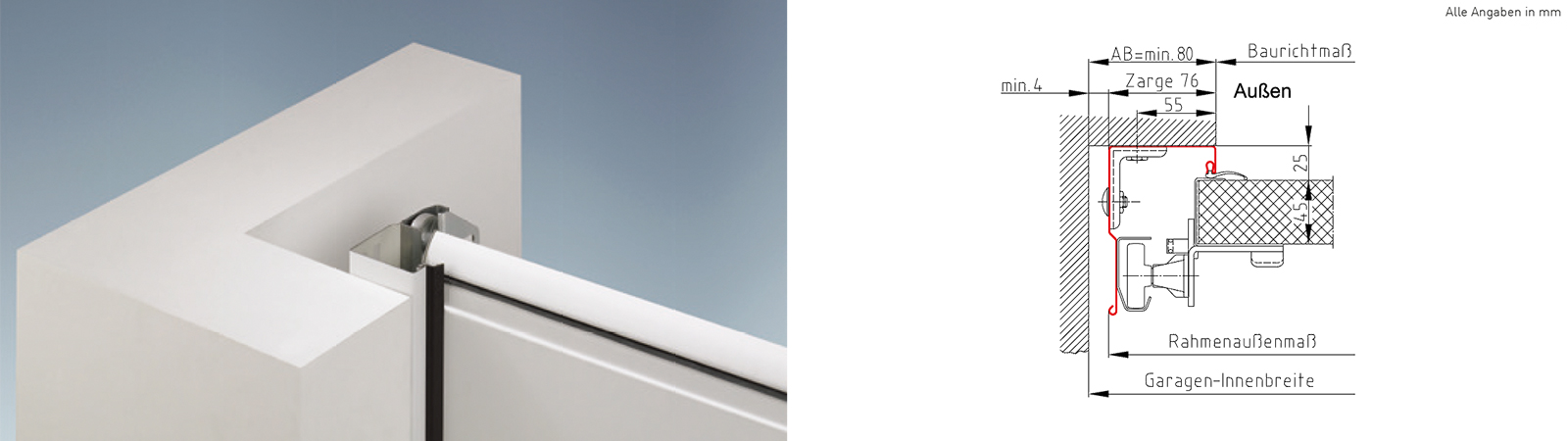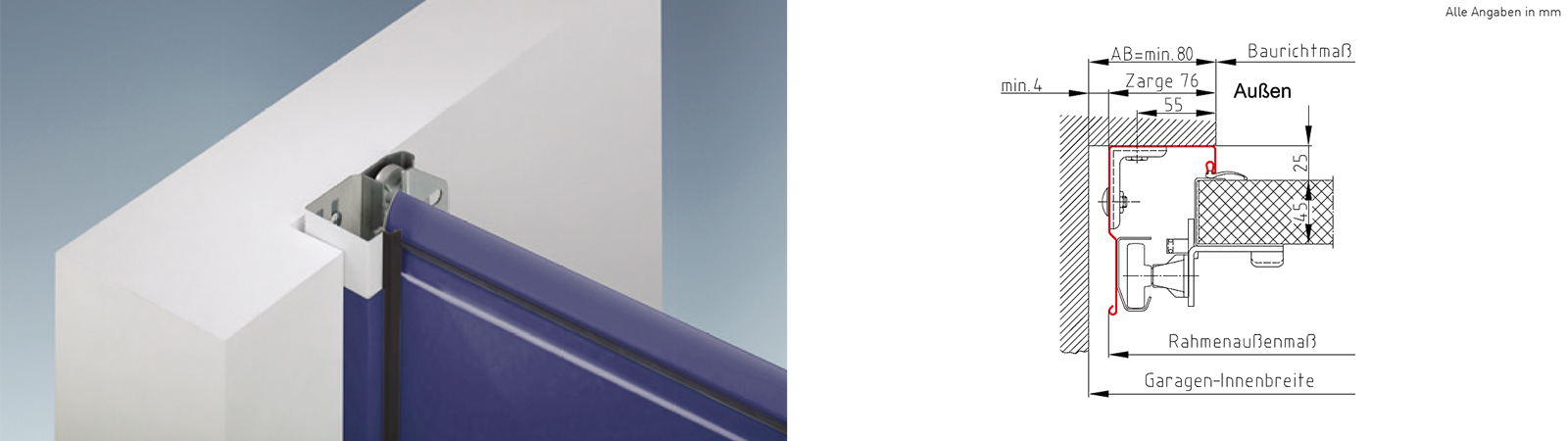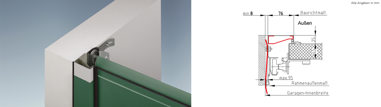 In practice, the ideal structural conditions are rarely found. Standard installation is therefore not always possible. Novoferm has developed suitable installation methods and accessories for all conceivable cases, which we describe in detail in our specialised portal.