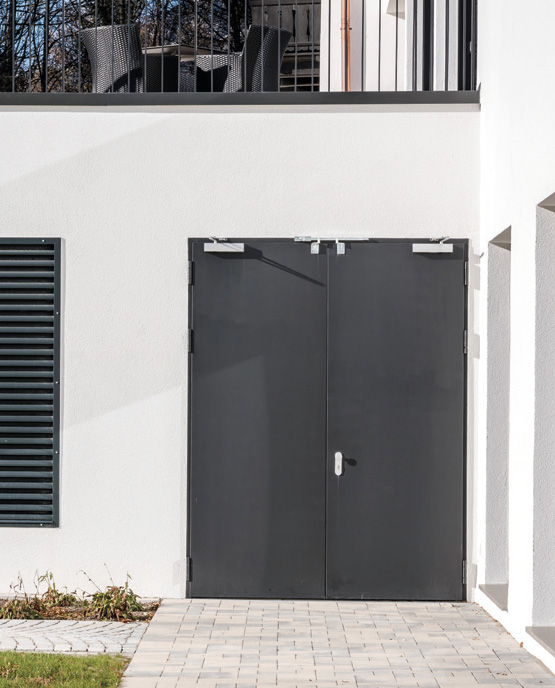 | Emergency exit systems (lever handle and panic lock) in accordance with DIN EN 179 or anti-panic locks (anti-panic bars and locks) in accordance with DIN EN 1125 can be integrated into doors |