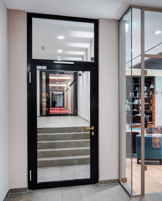 | Customised design surfaces based on the hotel architecture | Steel frames for hotel room doors due to high quality and robustness | |