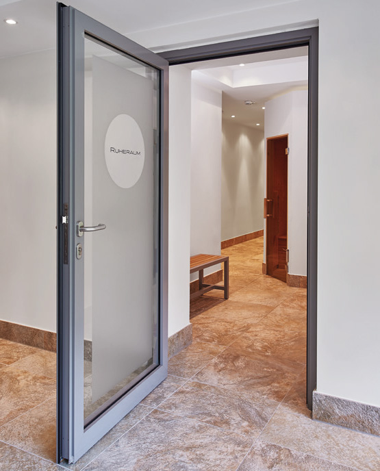 | Multifunctional doors from the Premio series with swing door drive or free swing door closer and easy opening moment as a transition from the hotel living areas to the underground car park or basement areas |