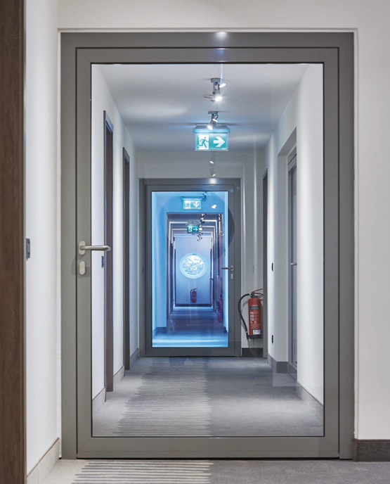 You shouldn't be able to tell from the outside whether a door has a smoke, sound insulation or security function. And with tubular frame systems, the focus is perhaps more on light transmission and open room design than the technical function of fire protection. With modern building systems, opposites can be reconciled and design restrictions minimised.