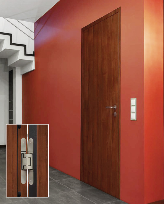 | Concealed 3D hinges or flush stainless steel striking plates for NovoPorta Plano design multifunctional doors |